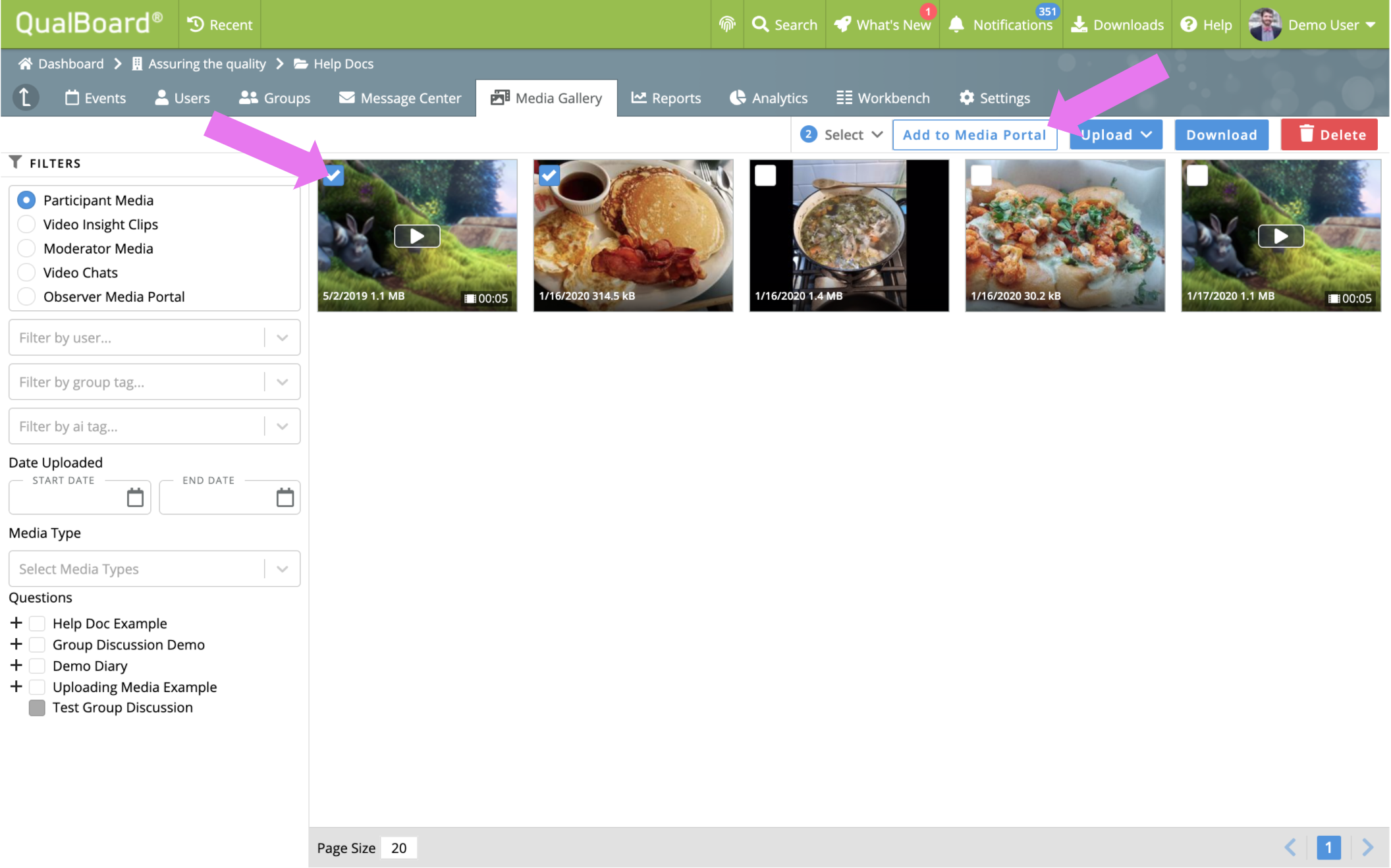 First, the Observer Media Portal must be enabled on your project. If you need it enabled, please reach out to your Research Manager or support@qualboard.com. Once enabled, click the Media Gallery tab.