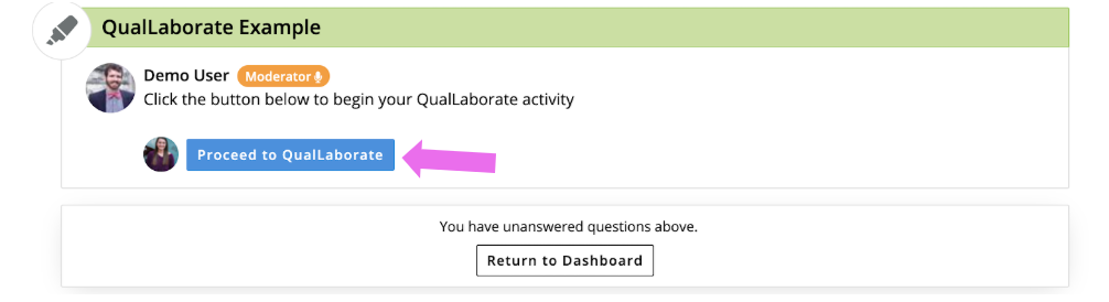 When you come across a QualLaborate that you need to complete, start by clicking the "Proceed to QualLaborate" button.